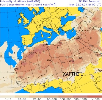 Το Πανεπιστήμιο Αθηνών, τμήμα Φυσικής έχει τον παρακάτω κόμβο, απ’ όπου μπορείτε να παρακολουθείτε τους χάρτες της αφρικανικής σκόνης.